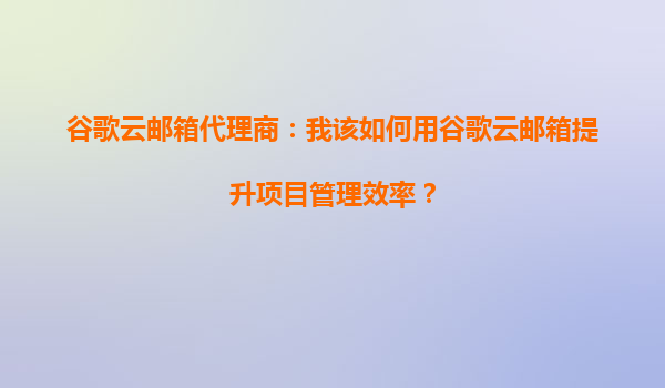 2025-09-29谷歌云邮箱代理商:我该如何用谷歌云邮箱提升项目管理效率? 一、引言:项目管理与高效协作的需求 在现代商业环境中,高效的项目管理是企业和团队成功的关键。无论是跨国企业还是中...
