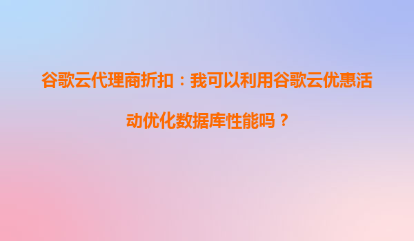 2025-09-28谷歌云代理商折扣:我可以利用谷歌云优惠活动优化数据库性能吗? 引言 在当今数据驱动的商业环境中,数据库性能直接影响企业的运营效率和用户体验。许多企业主和技术决策者都在思考一个...