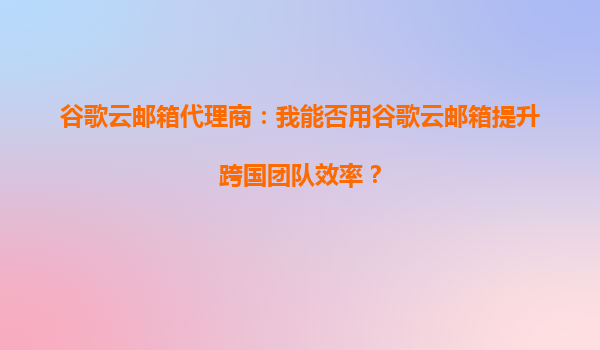 2025-09-28谷歌云邮箱代理商:我能否用谷歌云邮箱提升跨国团队效率? 一、谷歌云邮箱的核心优势分析 1.全球化基础设施支持谷歌云邮箱(GmailforBusiness)依托谷歌全球分布的20余个数据中心,提供...