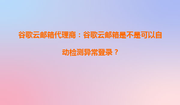 2025-09-28谷歌云邮箱代理商:解析谷歌云邮箱异常登录检测功能 一、谷歌云邮箱的自动异常登录检测能力 谷歌云邮箱(GoogleWorkspace)作为企业级邮件解决方案,集成了先进的安全机制,能够实时检测异常登录行为。通...