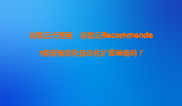 谷歌云代理商:谷歌云Recommender如何优化您的自动化扩展策略? 一、什么是谷歌云Recommender? 谷歌云Recommender是谷歌云平台(GCP)提供的一项智能推荐服务,它通过机器学习和大数据分析,为您的云资源使...