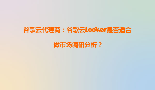 2025-09-26谷歌云代理商:谷歌云Looker是否适合做市场调研分析? 引言 在当今数据驱动的商业环境中,市场调研分析是企业制定战略决策的重要依据。谷歌云Looker作为一款强大的数据分析平台,凭借其与谷歌云生...