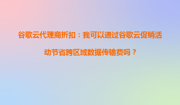 2025-09-26谷歌云代理商折扣:如何通过促销活动节省跨区域数据传输费? 一、谷歌云的核心优势 谷歌云(GoogleCloudPlatform,GCP)作为全球领先的云计算服务提供商,凭借其强大的基础设施和创新技术,...
