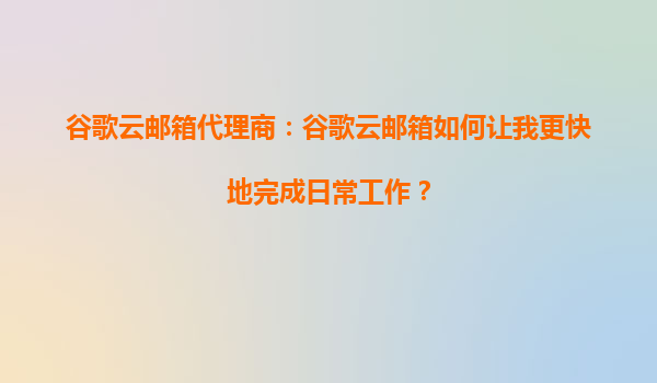 2025-09-26谷歌云邮箱代理商:谷歌云邮箱如何让我更快地完成日常工作? 一、谷歌云邮箱的核心优势 谷歌云邮箱(GmailforBusiness)作为企业级邮箱解决方案,凭借其高效、安全和智能化的特性,成为全球企业和个...