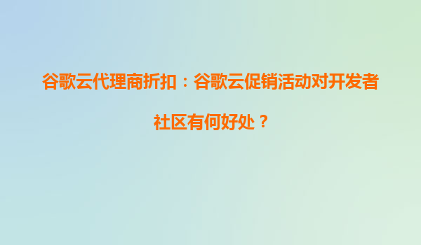 2025-09-26谷歌云代理商折扣:谷歌云促销活动对开发者社区有何好处? 引言 随着云计算技术的快速发展,越来越多的开发者开始依赖云平台来构建、部署和管理应用程序。谷歌云(GoogleCloud)作为全...