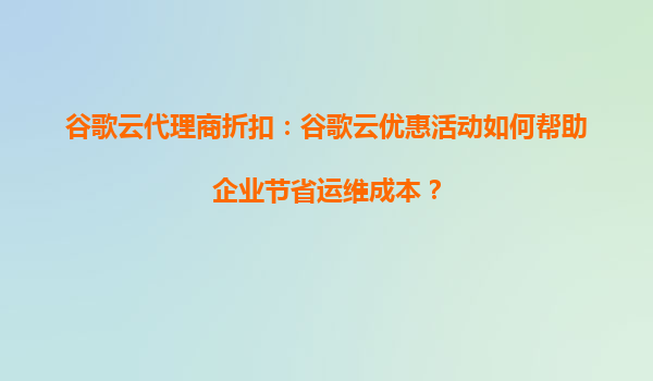 2025-09-25谷歌云代理商折扣:谷歌云优惠活动如何帮助企业节省运维成本? 一、谷歌云的核心优势 谷歌云(GoogleCloudPlatform,GCP)作为全球领先的云计算服务提供商,凭借其强大的基础设施、先...
