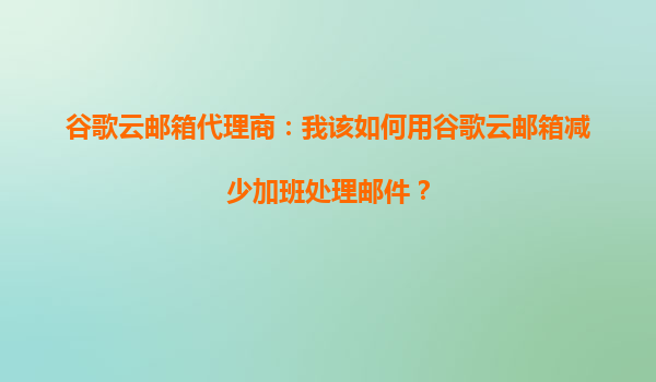 2025-09-25谷歌云邮箱代理商:我该如何用谷歌云邮箱减少加班处理邮件? 一、谷歌云邮箱的核心优势 谷歌云邮箱(GmailforBusiness)作为企业级邮件解决方案,凭借以下优势帮助用户高效管理邮件: 智能分类与...