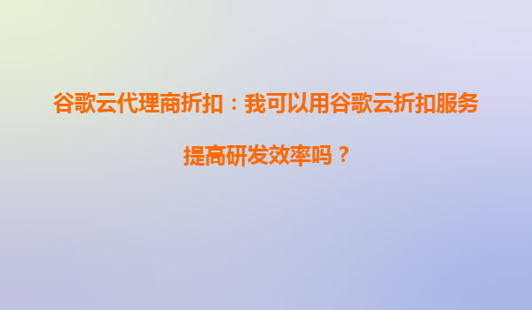 2025-09-25谷歌云代理商折扣:我可以用谷歌云折扣服务提高研发效率吗? 一、谷歌云的核心优势与研发效率的关系 谷歌云(GoogleCloudPlatform,GCP)作为全球领先的云计算服务提供商,其技术架构和资源整合...