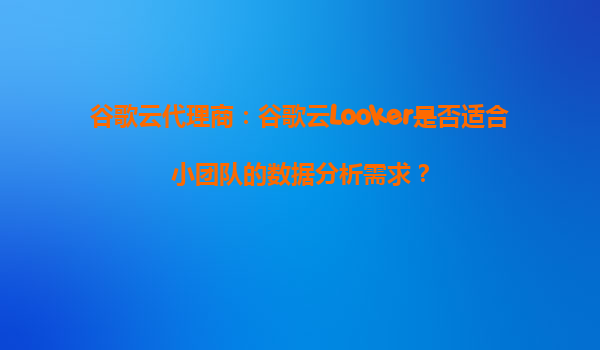 2025-09-24谷歌云代理商:谷歌云Looker是否适合小团队的数据分析需求? 引言 在当今数据驱动的商业环境中,数据分析工具的选择对企业的决策效率至关重要。对于小团队而言,如何在有限的资源和预算内选择一款高效、易...