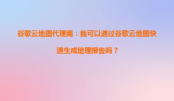 2025-09-24谷歌云地图代理商:我可以通过谷歌云地图快速生成地理报告吗? 随着技术的飞速发展,大数据和云计算正在持续改变各行各业的运作方式。地理信息系统(GIS)越来越多地融入企业的日常运营和生产中,成为提升效率的关...