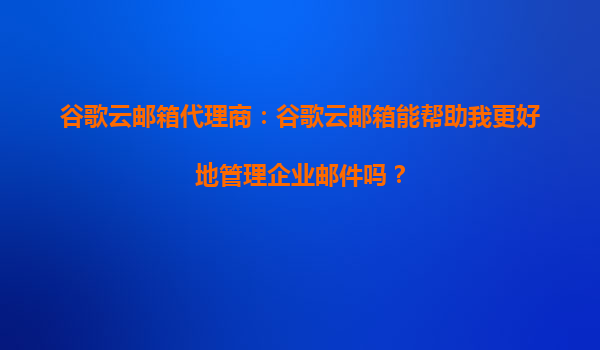 2025-09-24谷歌云邮箱代理商:谷歌云邮箱能帮助我更好地管理企业邮件吗? 引言 在数字化时代,企业邮件系统不仅是沟通工具,更是业务运转的核心枢纽。传统邮箱的局限性(如存储不足...