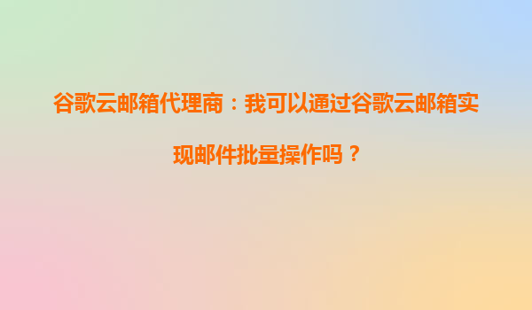 2025-09-23谷歌云邮箱代理商:我可以通过谷歌云邮箱实现邮件批量操作吗? 引言 在当今快节奏的商业环境中,高效的电子邮件管理对于企业和个人都至关重要。作为谷歌云邮箱代理商,我们经常被客户询问一个关键问题:"我可以...