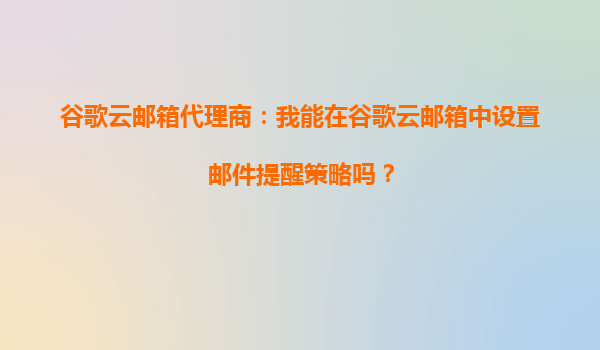 2025-09-23谷歌云邮箱代理商:深度解析邮件提醒策略的设置与应用 一、谷歌云邮箱的核心优势 作为企业级电子邮件解决方案的标杆,谷歌云邮箱(GoogleWorkspace)凭借其高效、安全与智能化的特性,成为全球企业的首选...