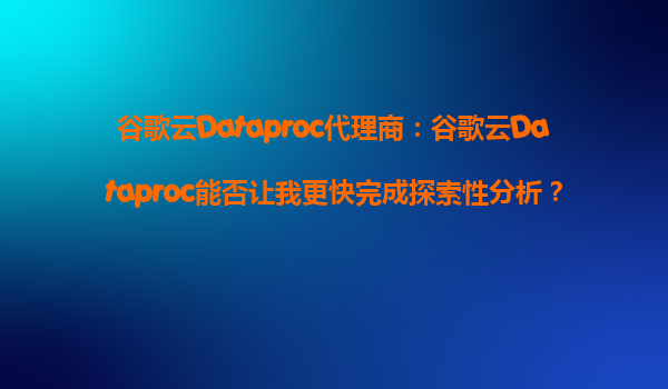 2025-09-23谷歌云Dataproc代理商:谷歌云Dataproc能否让我更快完成探索性分析? 在数据科学和工程领域,探索性分析(ExploratoryAnalysis)是挖掘数据价值的核心环节。无论是研究数据分布、清洗数据还是验证假设...