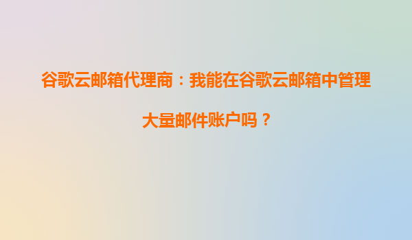 2025-09-22谷歌云邮箱代理商指南:高效管理大量邮件账户的解决方案 一、引言 随着企业规模扩大或业务需求增长,管理大量邮件账户成为许多组织的刚需。作为谷歌云邮箱代理商,我们经常被客户询问:"我能在谷歌云邮箱...