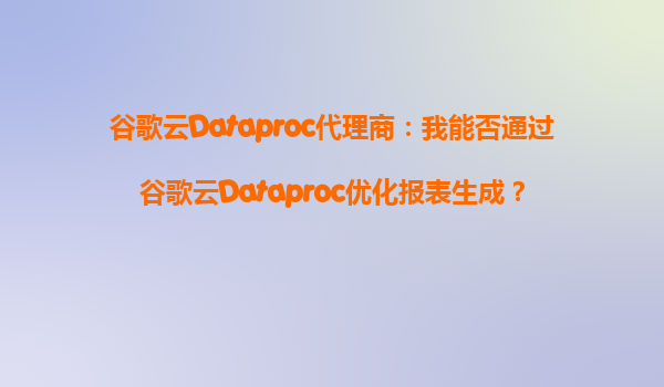 2025-09-22谷歌云Dataproc代理商:我能否通过谷歌云Dataproc优化报表生成? 谷歌云Dataproc的优势 谷歌云Dataproc作为一款托管式ApacheSpark和ApacheHadoop服务,为企业提供了高效、灵活且低...