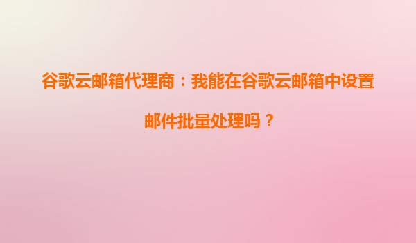 2025-09-22谷歌云邮箱代理商:我能在谷歌云邮箱中设置邮件批量处理吗? 一、谷歌云企业邮箱的批量处理功能概述 作为全球领先的企业级邮箱服务,谷歌云邮箱(GoogleWorkspace)通过其强大的云端架构和智能化工...