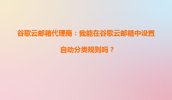 2025-09-22谷歌云邮箱代理商:如何在谷歌云邮箱中设置自动分类规则? 一、谷歌云邮箱的自动分类功能简介 谷歌云邮箱(GmailforBusiness)作为企业级邮件解决方案,不仅继承了个人版Gmail的智能特性,还通过强大的云端技...
