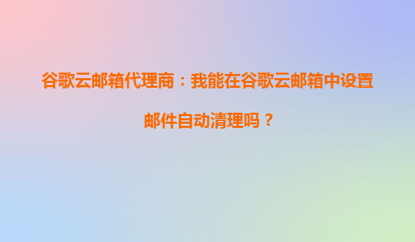 2025-09-21谷歌云邮箱代理商指南:如何在谷歌云邮箱中设置邮件自动清理功能? 引言:邮件管理的挑战与谷歌云邮箱的优势 在数字化办公时代,电子邮件已成为企业日常沟通的...