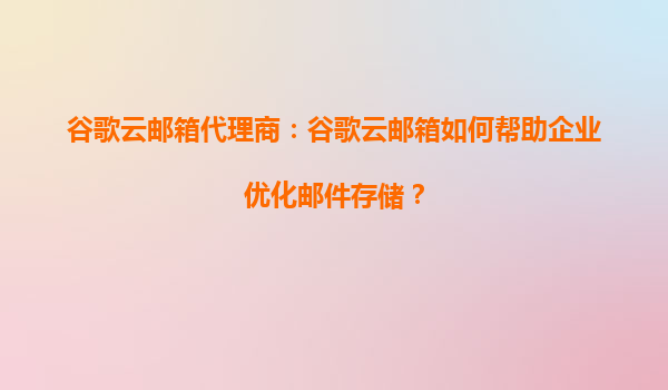 2025-09-20谷歌云邮箱代理商:谷歌云邮箱如何帮助企业优化邮件存储? 引言 在数字化时代,电子邮件是企业沟通的重要工具之一。然而,随着邮件数量的增加,如何高效管理和存储邮件成为许多企业面临的挑战。谷...