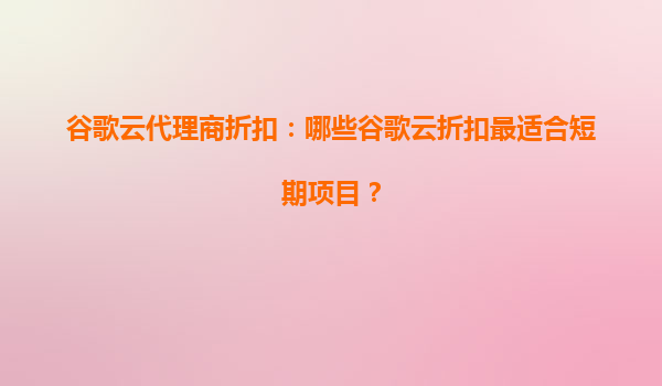 2025-09-19谷歌云代理商折扣:哪些谷歌云折扣最适合短期项目? 引言 在当今数字化时代,越来越多的企业和开发者选择云计算平台来满足其业务需求。而作为全球领先的云计算服务提供商之一,谷歌云以其高性能、高可靠性...