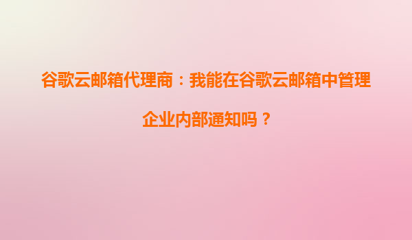 2025-09-19谷歌云邮箱代理商解析:利用谷歌云邮箱高效管理企业内部通知 一、引言:企业沟通的核心需求与挑战 在数字化办公时代,企业内部通知的高效管理直接影响团队协作效率和信息传递准确性。传统邮件系统或即...