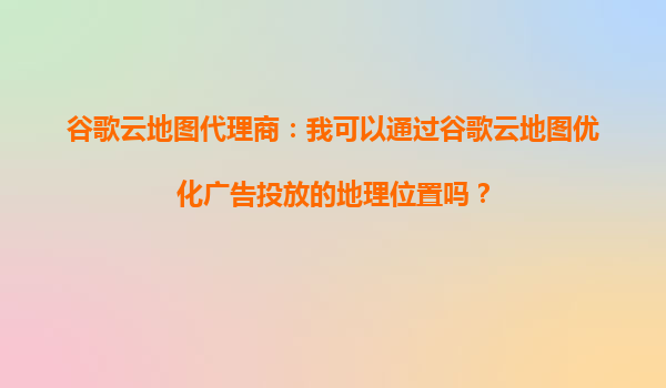 2025-09-19谷歌云地图代理商:我可以通过谷歌云地图优化广告投放的地理位置吗? 一、谷歌云地图的核心优势与广告投放结合 谷歌云地图(GoogleMapsPlatform)作为全球领...