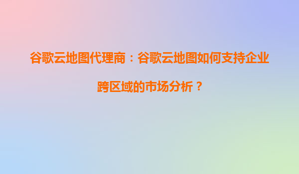 2025-09-18谷歌云地图代理商:谷歌云地图如何支持企业跨区域的市场分析? 引言 在全球化的商业环境中,企业需要快速、准确地分析不同区域的市场动态,以制定有效的市场策...