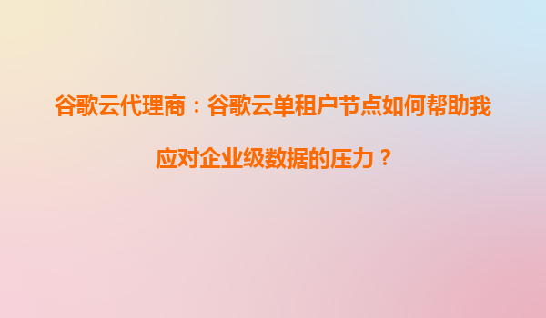 谷歌云代理商:谷歌云单租户节点如何帮助我应对企业级数据的压力? 企业级数据的挑战与需求 在数字化转型的浪潮中,企业级数据的处理需求呈指数级增长。从实时交易分析到大规模机器学习训练...