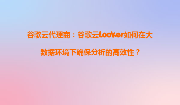 2025-09-17谷歌云代理商:谷歌云Looker如何在大数据环境下确保分析的高效性? 引言 在大数据时代,企业需要高效、可靠的工具来分析和处理海量数据。谷歌云的Looker作为一...