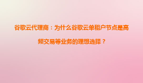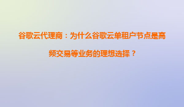 为什么谷歌云单租户节点是高频交易等业务的理想选择? 在当今数字化经济浪潮中,高频交易(HFT)和实时数据处理业务对计算资源的独占性、稳定性和低延迟提出了极致要求。传统的多租户云架构可能因资源共享导致...