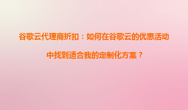 如何通过谷歌云代理商折扣找到适合您的定制化方案 谷歌云的核心优势 谷歌云(GoogleCloud)作为全球领先的云计算服务平台,凭借其强大的基础设施、智能化的数据分析工具和灵活的付费模式...