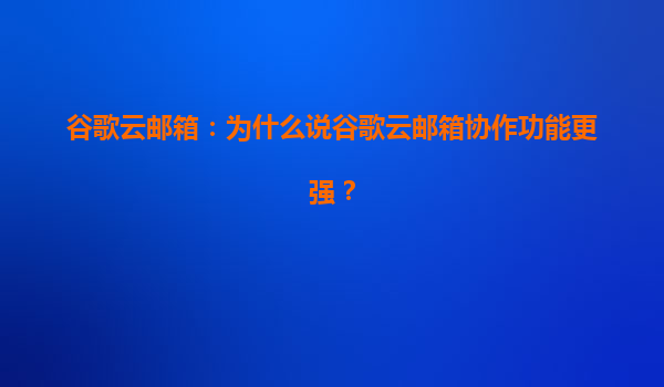 2025-07-02谷歌云邮箱:为什么说谷歌云邮箱协作功能更强? 1.谷歌云邮箱的核心协作优势 谷歌云邮箱(GoogleWorkspace)作为企业级电子邮件解决方案,其协作功能远超传统邮箱服务,主要体现在以下方面: 1.1无缝整...