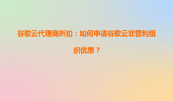 2025-07-02谷歌云代理商折扣:如何申请谷歌云非营利组织优惠 谷歌云(GoogleCloud)是全球领先的公共云服务提供商之一,凭借其高性能计算能力、无与伦比的数据安全性和丰富的AI工具,成为许多企业和非营利组织的首选云服务解...