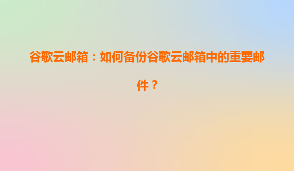 2025-07-02谷歌云邮箱:如何备份谷歌云邮箱中的重要邮件? 为什么需要备份谷歌云邮箱中的重要邮件? 谷歌云邮箱(Gmail)作为全球最流行的电子邮件服务之一,被广泛应用于个人和企业通信。尽管谷歌提供了强大的...