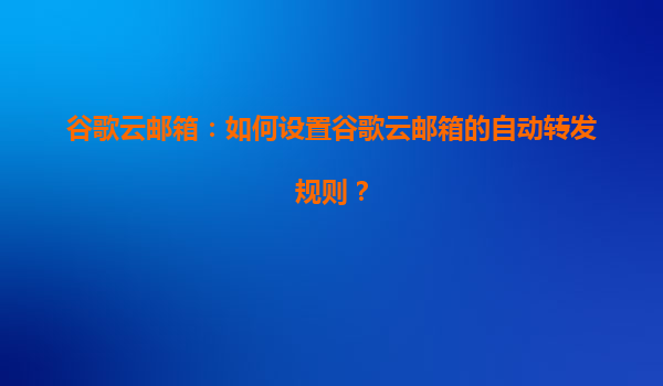 2025-07-02谷歌云邮箱自动转发功能:高效管理的实用指南 在当今快节奏的工作环境中,邮件自动转发功能已成为提升效率的关键工具。作为全球领先的云服务提供商,谷歌云邮箱(GoogleWorkspace)以其稳定性和智能化功能著称...