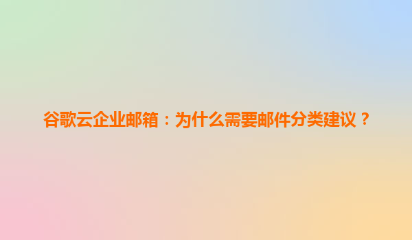 2025-04-25谷歌云企业邮箱:为什么需要邮件分类建议? 一、引言:企业邮箱管理的痛点 在数字化办公场景中,企业邮箱是日常沟通的核心工具。然而,随着业务规模扩大,员工日均处理邮件量激增...