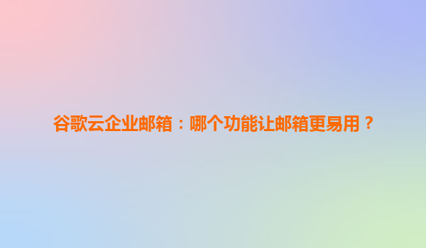 2025-04-25谷歌云企业邮箱:提升效率的五大核心功能 在数字化转型的浪潮中,企业邮箱不仅是沟通工具,更是团队协作与数据管理的核心平台。谷歌云企业邮箱(GoogleWorkspace)凭借其智能化功能和云端生态优势...