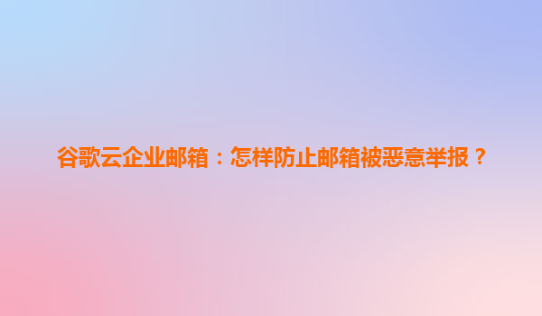 2025-04-22谷歌云企业邮箱:如何有效防止邮箱被恶意举报? 一、恶意举报的影响与防范必要性 企业邮箱是日常沟通与业务运营的核心工具,但恶意举报可能导致账号被临时封禁、邮件被标记为垃圾邮件,甚至影响企...