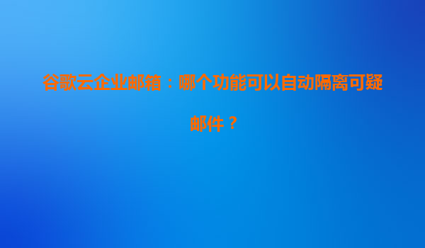 2025-04-22谷歌云企业邮箱:如何通过自动隔离可疑邮件提升企业安全? 一、为什么企业需要自动隔离可疑邮件的功能? 在数字化办公场景中,电子邮件仍是网络攻击的主要入口。根据IBM《2023年...