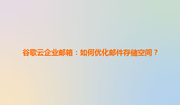 2025-04-22谷歌云企业邮箱:如何优化邮件存储空间? 一、谷歌云企业邮箱的核心优势 谷歌云企业邮箱(GoogleWorkspace)作为全球领先的企业级邮件解决方案,凭借以下核心优势成为众多企业的首选: ...