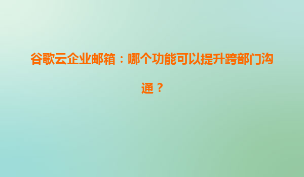 2025-04-22谷歌云企业邮箱:提升跨部门沟通的核心功能解析 引言:跨部门协作的痛点与解决方案 在企业运营中,跨部门沟通效率直接影响整体生产力。传统邮件系统常面临信息分散、响应延迟、协作壁垒等问题。谷歌云...