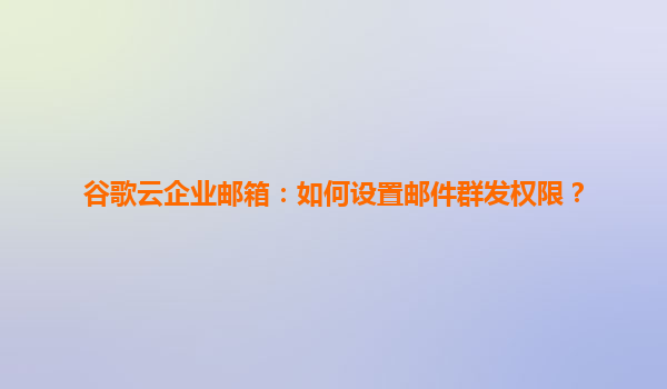 2025-04-22谷歌云企业邮箱:如何设置邮件群发权限? 一、谷歌云企业邮箱的核心优势 谷歌云企业邮箱(GoogleWorkspace)凭借其强大的云基础设施和智能化功能,成为企业高效协作的首选工具。以下是其核心优势: ...