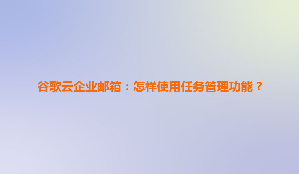 2025-04-22谷歌云企业邮箱:任务管理功能的全面使用指南 一、为什么需要任务管理功能? 在快节奏的现代办公环境中,企业邮箱不仅是沟通工具,更需承担工作流程管理的重任。谷歌云企业邮箱通过深度整合任务管理模...