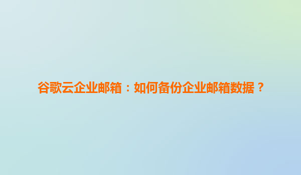 2025-04-22谷歌云企业邮箱数据备份指南 一、为什么需要备份企业邮箱数据? 企业邮箱作为核心通信工具,存储了大量业务数据、客户信息和历史记录。数据丢失可能导致: 业务连...