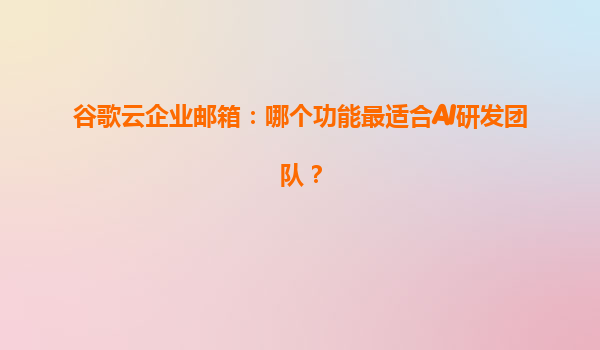 2025-04-21谷歌云企业邮箱:AI研发团队的最佳协作与效率工具 为什么AI研发团队需要专业的邮箱解决方案? AI研发团队通常面临高频协作、海量数据处理、跨时区沟通等挑战。...