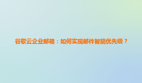 谷歌云企业邮箱:如何实现邮件智能优先级? 一、引言:邮件管理的挑战与智能化的必要性 在数字化办公时代,企业员工每天需要处理大量邮件,传统邮箱的“先到先处理”模式容易导致...