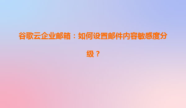 2025-04-20谷歌云企业邮箱:如何设置邮件内容敏感度分级? 一、邮件敏感度分级的重要性 随着企业数字化进程加速,邮件中传输的敏感数据(如财务信息、客户隐私、商业机密)面临更高的泄露风险。谷歌云企业邮...