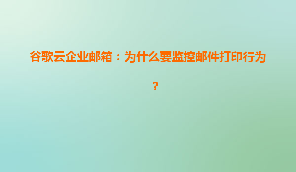 2025-04-20谷歌云企业邮箱:为什么要监控邮件打印行为? 一、邮件打印行为监控的必要性 在数字化办公场景中,邮件仍是企业信息传递的核心工具。尽管电子化流程普及,打印行为仍可能成为数据泄露的潜在风险点: ...