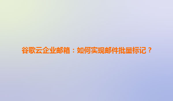 2025-04-19谷歌云企业邮箱:如何实现邮件批量标记? 一、为什么需要邮件批量标记? 在日常工作中,企业邮箱用户常面临海量邮件的分类管理问题。手动逐条标记邮件耗时费力,而通过谷歌云企业邮箱(GoogleWorkspac...